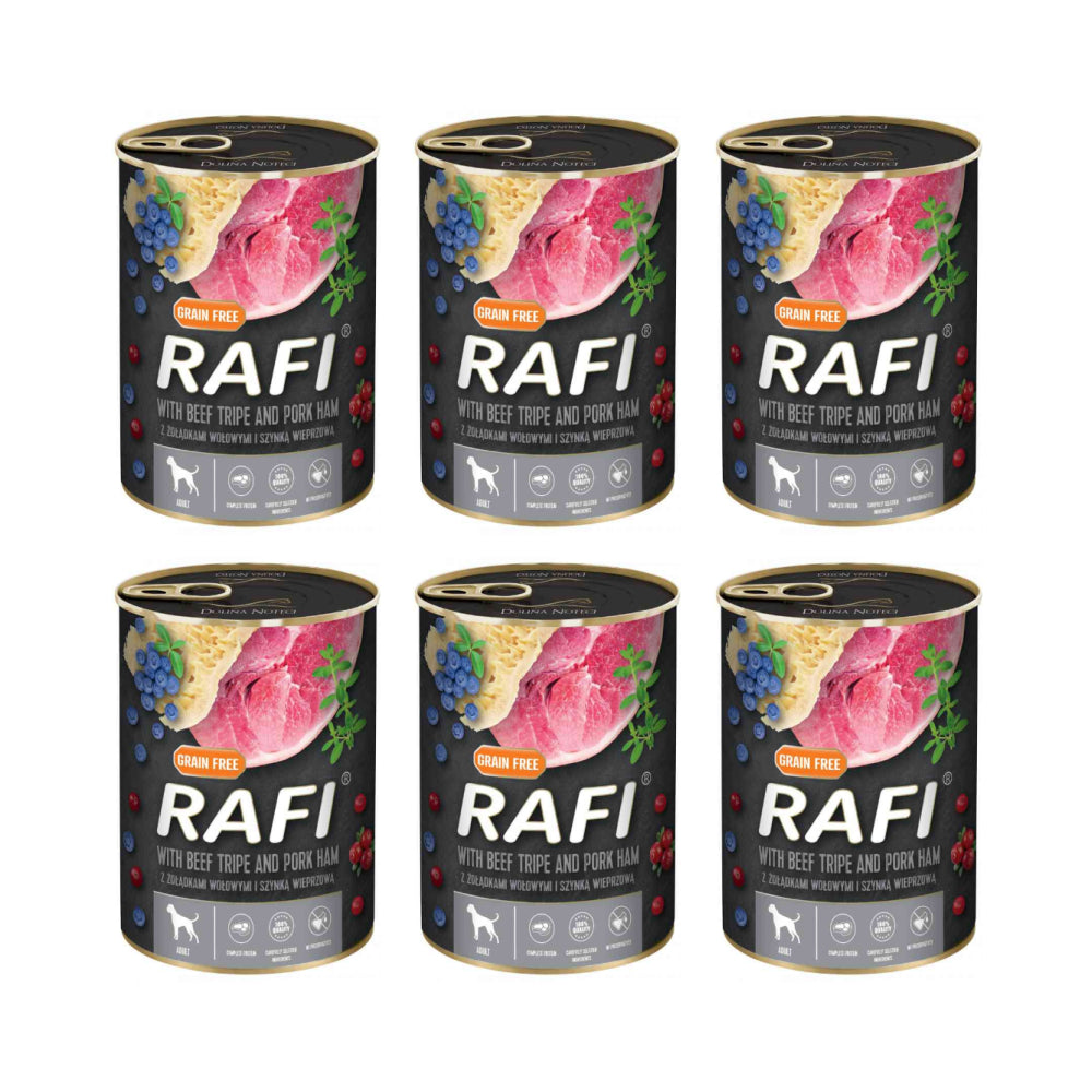 Pakiet Rafi Mokra Karma Dla Psa Żołądki Wołowe, Szynka, Borówka, Żurawina 6 x 800 g
