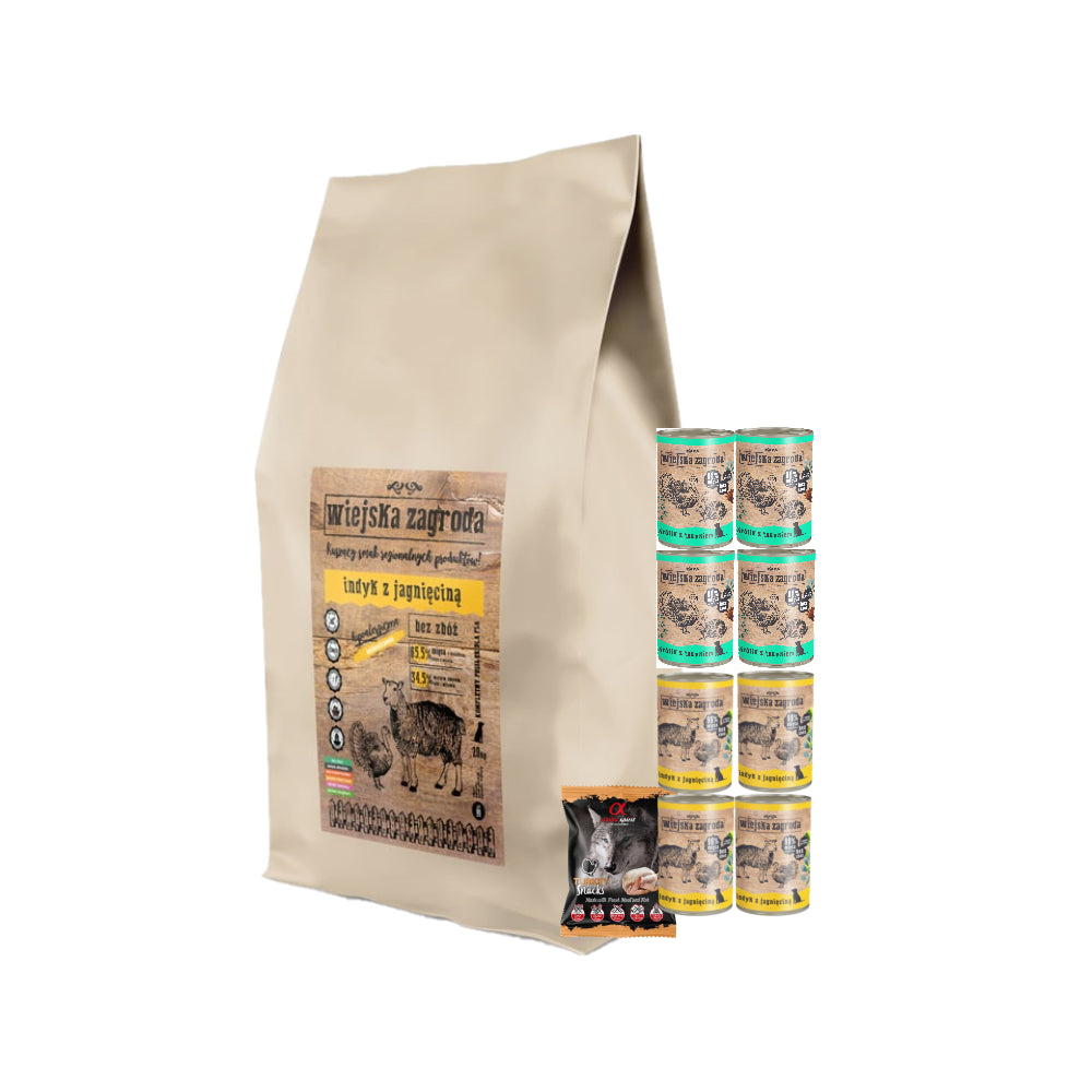 Pakiet Wiejska Zagroda Indyk z Jagnięciną 20 kg + 9 GRATISÓW!