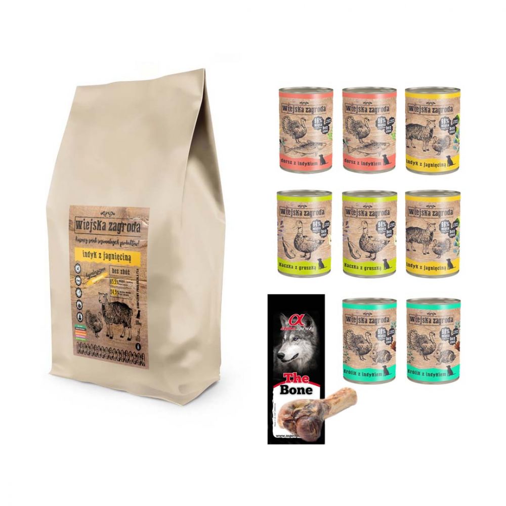 Pakiet Wiejska Zagroda Indyk z Jagnięciną 20 kg + 9 GRATISÓW! Mokra Karma, Przysmak