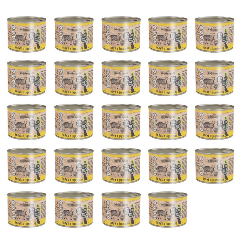 indyk 44% (w tym ok. 28% mięsa z mięśni, ok. 27% szyjek, ok. 27% wątróbka, ok. 18% żołądki ) jagnięcina 26% (w tym ok. 39% mięsa z mięśni, ok. 38% flaczki, ok. 23% podroby) bulion z indyka i jagnięciny 26,8% ziemniaki 2% minerały 1% olej z łososia 0,1% algi morskie (spirulina) 0,1%