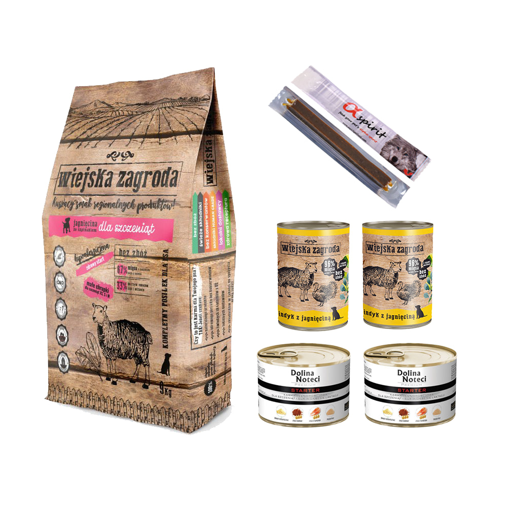 Pakiet Wiejska Zagroda Jagnięcina ze Szpinakiem dla Szczeniąt 9 kg + GRATISY!