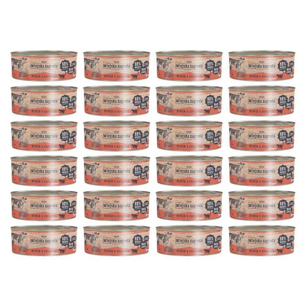 królik 40% (w tym ok. 55% mięsa z mięśni, ok. 45% podroby), cielęcina 30% (w tym ok. 47% mięsa z mięśni i serc, ok. 27%, wątróbka, ok. 26% płuca), bulion z królika i cielęciny 28,4%, minerały 1%, olej z łososia 0,5%, spirulina 0,1%.