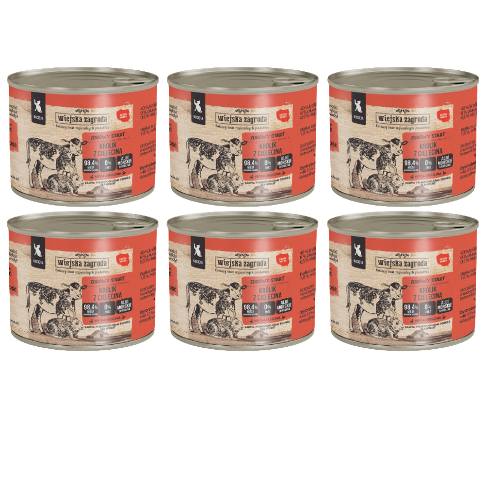 Pakiet Wiejska Zagroda Królik z Cielęciną Dla Kociąt 6 x 200 g
