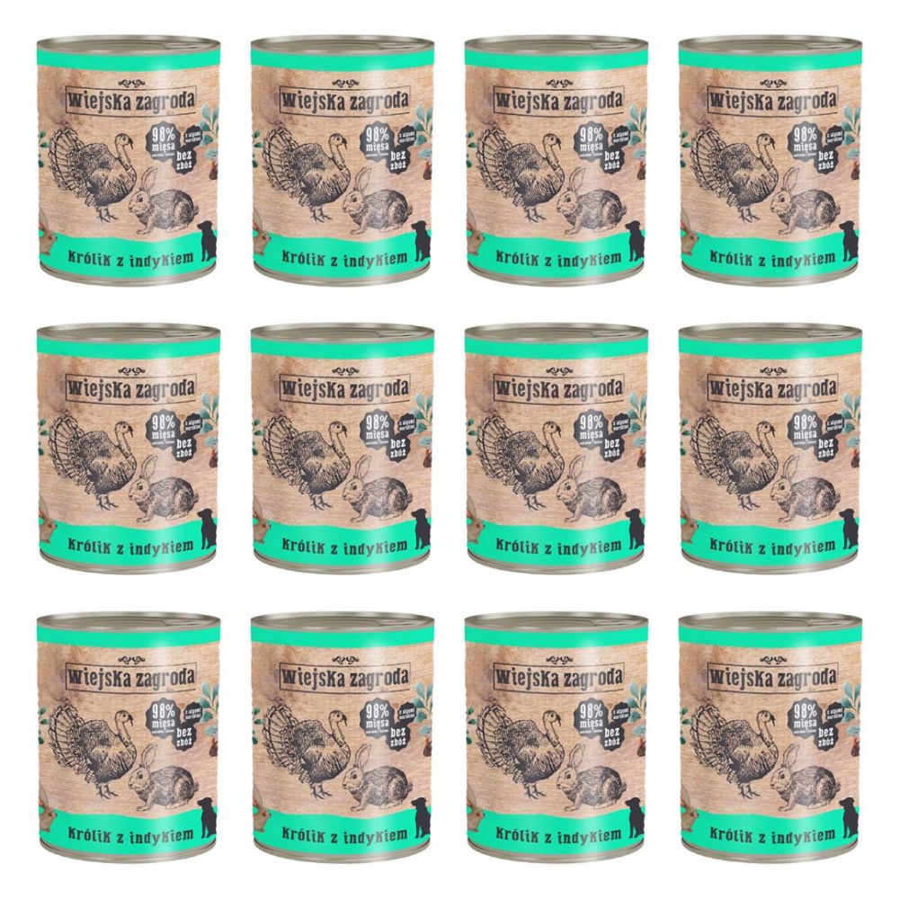 Pakiet Wiejska Zagroda Królik z Indykiem 12 x 800 g
