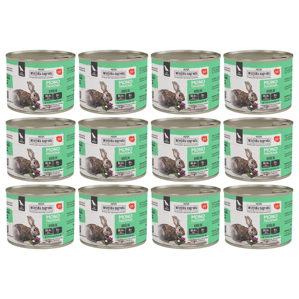 Pakiet Wiejska Zagroda Monoproteinowa Mokra Karma Dla Dorosłych Psów Królik 12 x 200 g