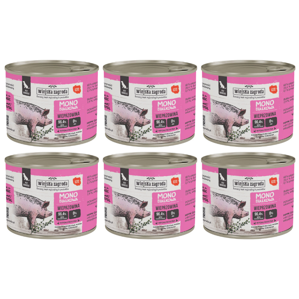 Pakiet Wiejska Zagroda Monoproteinowa Mokra Karma Dla Dorosłych Psów Wieprzowina 6 x 200 g