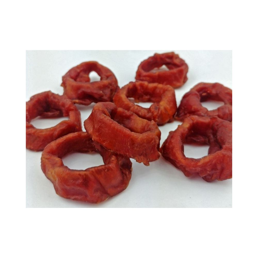 Przysmak dla psa z piersi z kaczki i ryby w postaci zawiniętych w smakowite krążki