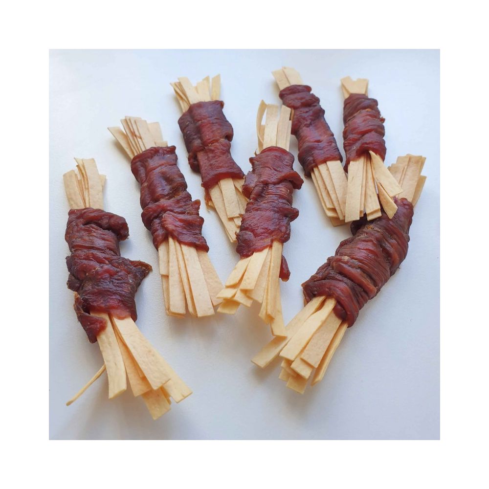 Smakołyk dla psów Ośmiorniczki z mięsem kaczki to wyborna kombinacja smakowa. Aromatyczna ryba owinięta suszonym mięsem z piersi kaczki ,której nie oprze się nawet najbardziej wybredny smakosz.