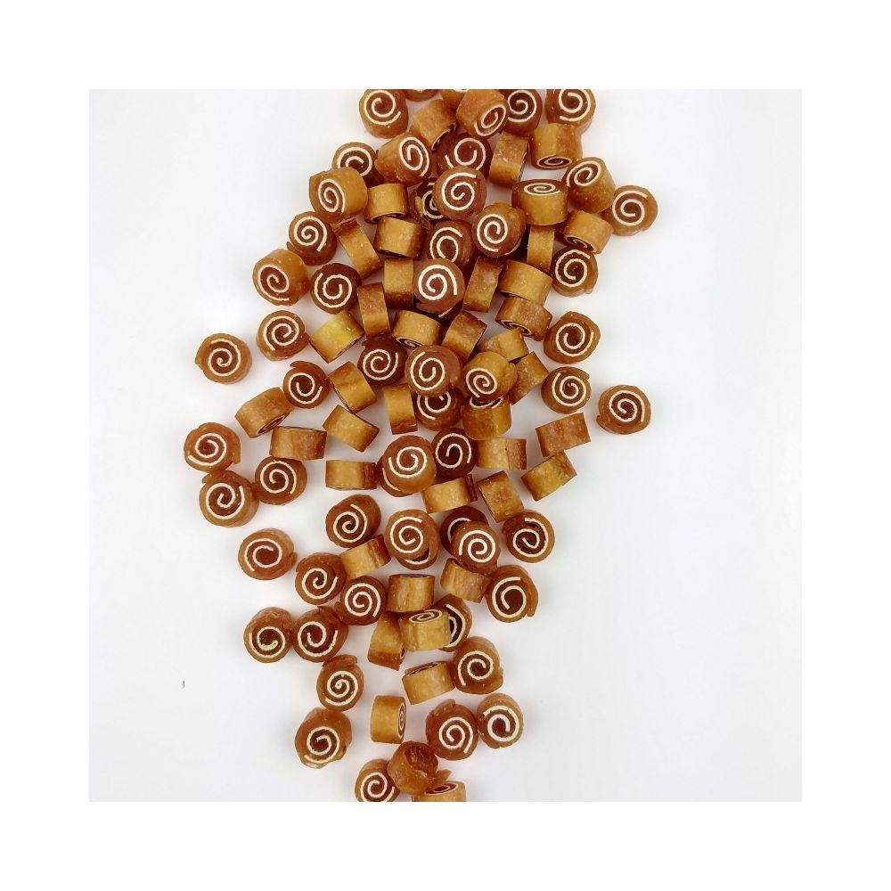 Przysmak Prozoo Rolki to soczyste, aromatyczne i miękkie rolki z delikatnego mięsa kurczaka połączonego z mięsem ryby, które jest bogatym źródłem kwasów Omega 3 i 6 oraz wysokoenergetycznego białka. Ciekawy kształt i odpowiednia konsystencja mięsnych przekąsek Prozoo gwarantują Twojemu psu wielką przyjemność z jedzenia i zabawę na długi czas.