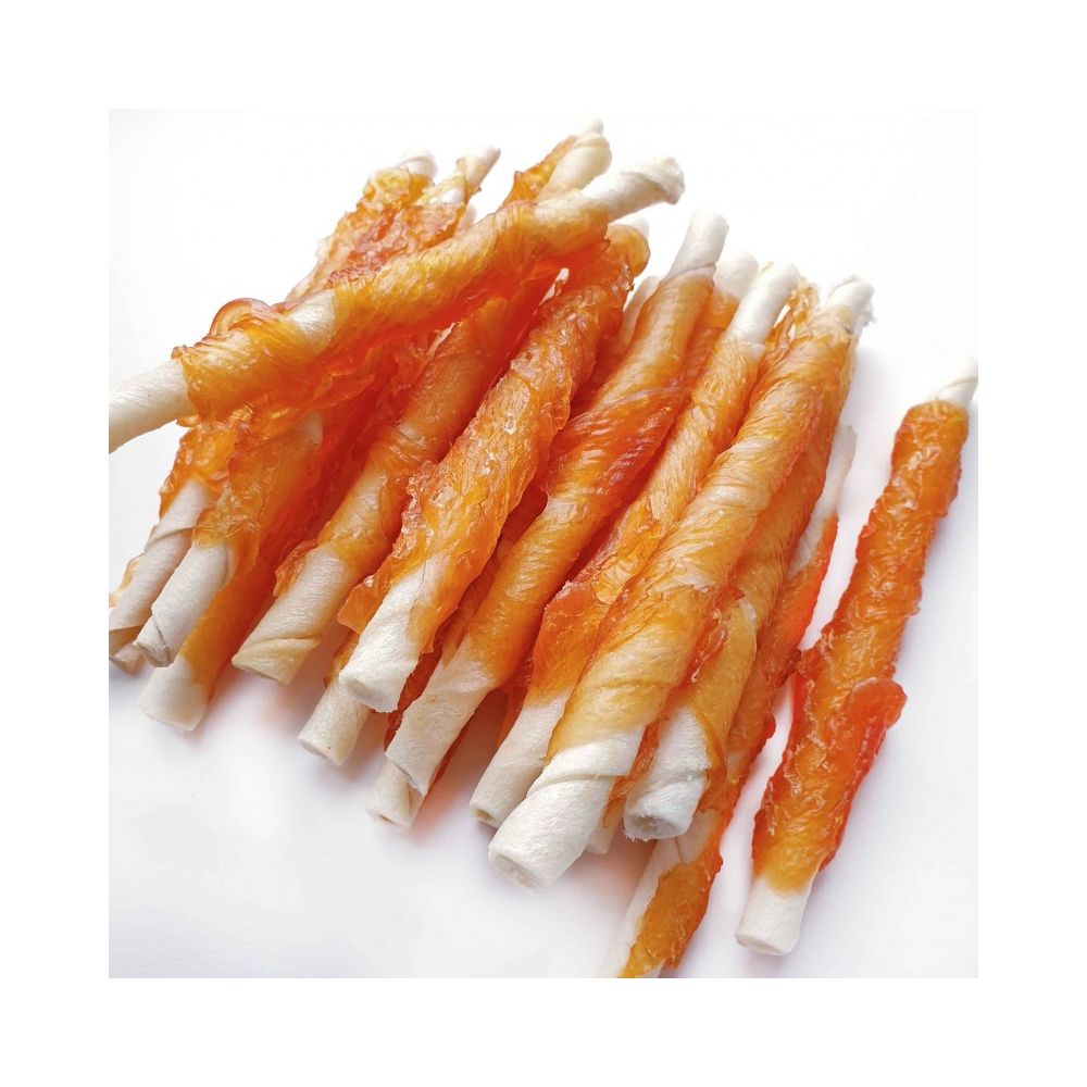 Niektóre psy to prawdziwi smakosze - pewnych typów pożywienia nawet nie ruszą, a na inne rzucą się tak, aż będą trzęsły im się uszy. Właśnie takie są smakołyki od Prozoo, na przykład biała skóra owinięta mięsem z kurczaka w postaci smacznych paluszków, za którymi bardzo przepadają wszystkie psiaki. Ten produkt w wersji XL w kilogramowej paczce wystarczy na dłuższy czas i może być świetną pomocą podczas wszelkiego rodzaju terapii, treningów czy też zwykłego rodzaju spacerów, gdy chce się nagrodzić psa za dobre sprawowanie. Takie psie przysmaki urozmaicą dietę Twojego czworonoga i uczynią jego życie trochę smaczniejszym.Czas na porządny, soczysty haps! Pies na pewno będzie w siódmym niebie!