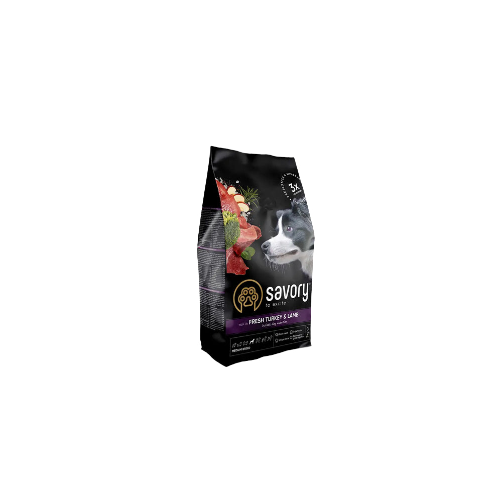 Savory Dog Adult Medium Breeds Turkey&Lamb Karma Sucha Dla Dorosłych Psów Średnich Ras z Indykiem i Jagnięciną 3 kg