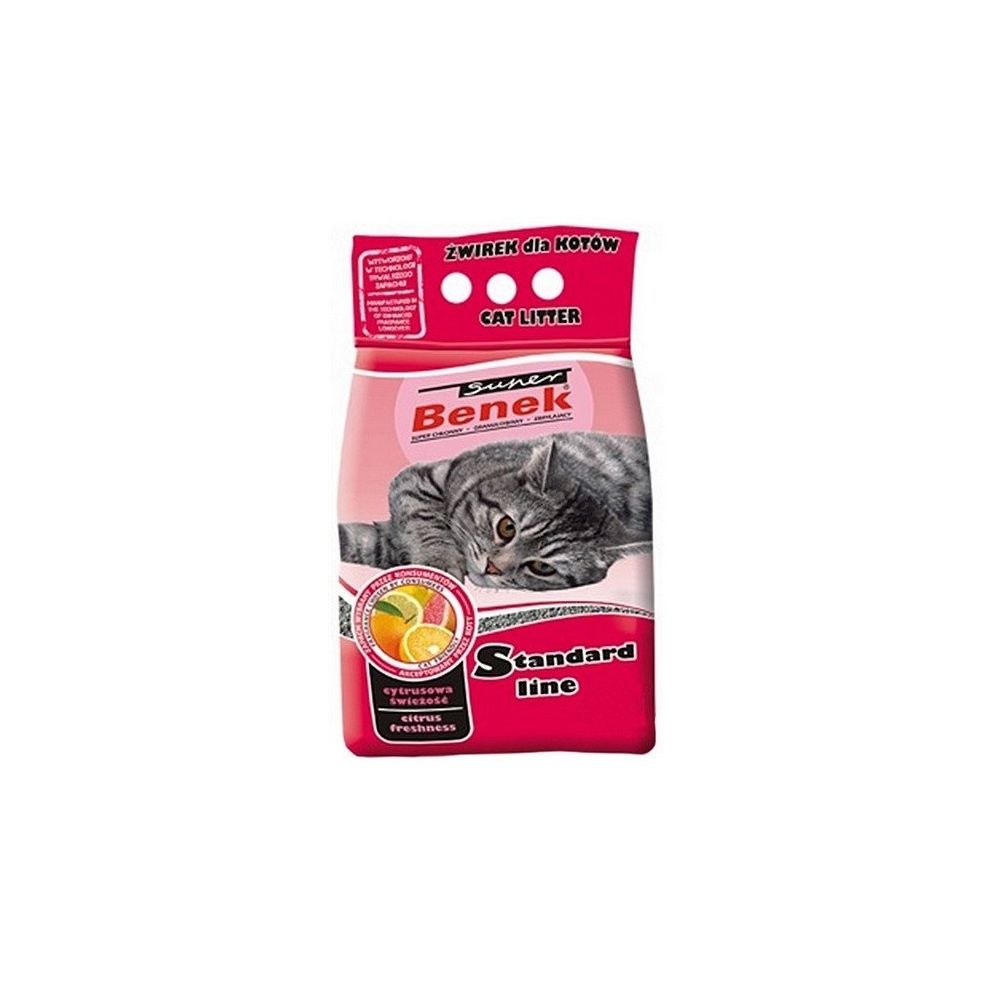 Bezpyłowy, mineralny żwirek dla kotów, wytworzony z bentonitu najwyższej jakości. Specjalnie wyselekcjonowana drobna frakcja ziarnowa zapewnia doskonałe właściwości produktu. Żwirek skutecznie i szybko sorbuje ciecze tworząc małe i zwarte bryłki. Błyskawicznie pochłania nieprzyjemne zapachy, dezodoryzując środowisko. Produkt wzbogacony dodatkowo o kompozycję zapachową, która została zaaplikowana w Technologii Trwalszego Zapachu. Dzięki temu w otoczeniu toalety przez długi czas panuje przyjemny i świeży zapach owoców cytrusowych. Zastosowana kompozycja jest akceptowalna przez koty. Sposób użycia: Kocią toaletę wypełnić warstwą żwirku o grubości około 5 cm, w zależności od wielkości kota. Zużytą część żwirku należy usuwać, jednocześnie uzupełniając braki świeżym podłożem. Dzięki temu nie ma potrzeby wymiany całego żwirku, a kuweta Twojego kota pozostaje zawsze świeża i czysta. Uwaga: produktu nie należy usuwać drogą sanitarną, gdyż grozi to niedrożnością kanalizacji. Skład: bentonit granulowany, węglan sodu, cytrusowa kompozycja zapachowa. Produkt nie ulega przeterminowaniu.