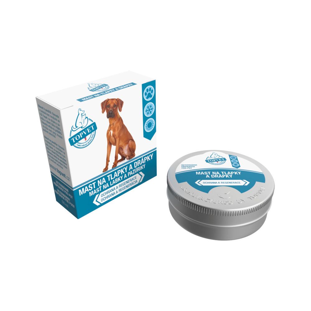 Maść Topvet do łap i pazurów to luksusowy preparat do profilaktyki skóry łap i pazurów oraz łożysko paznokcia. Maść działa miejscowo jako zabezpieczenie przed niekorzystnym działaniem czynników zewnętrznych, a w szczególności przed działaniem soli, sypkich materiałów, substancji drażniących uwalnianych z gorących nawierzchni asfaltowych, nadmiernej wilgoci, kurzu, błota, obcych substancji itp.