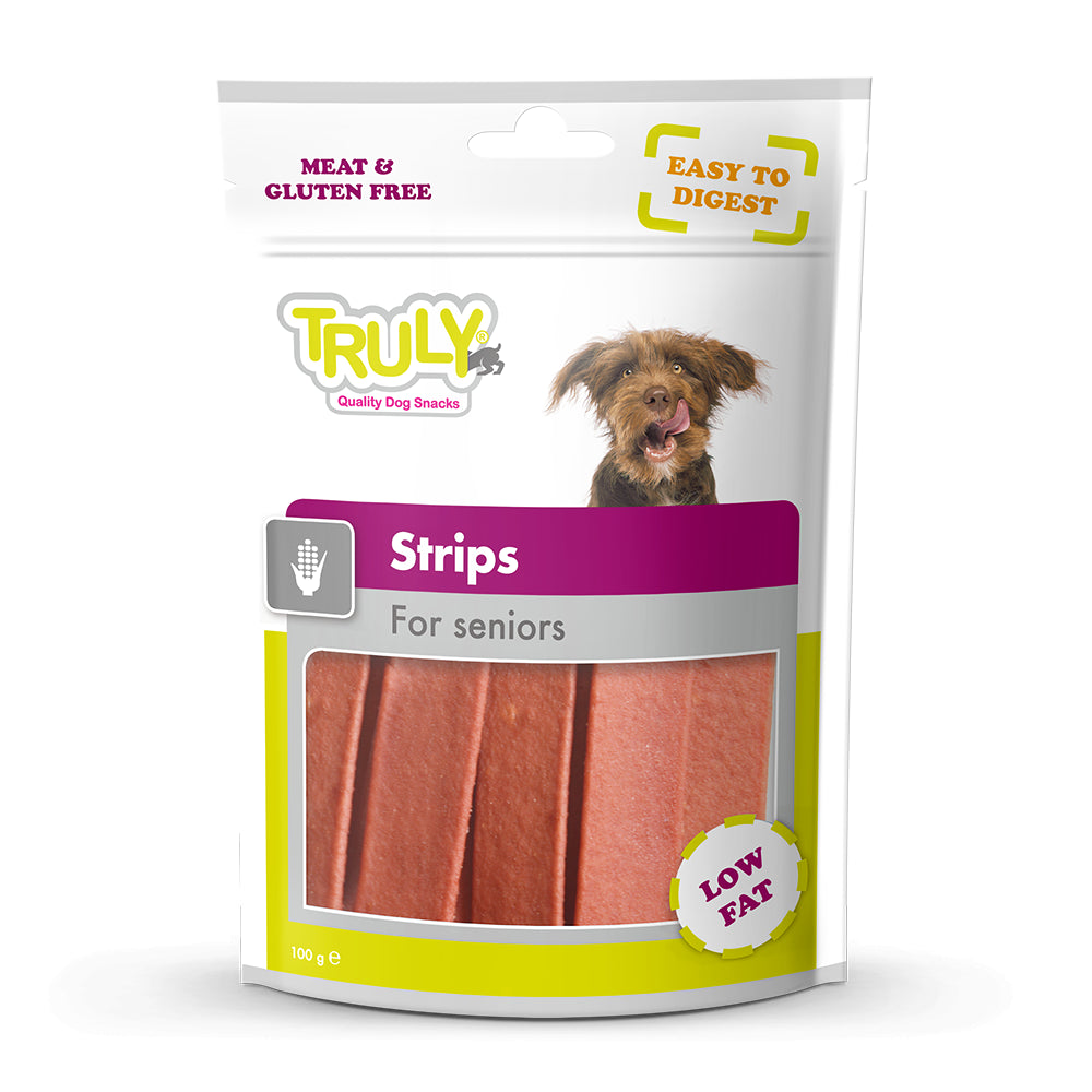 Przysmak dla psich seniorów. Przygotowane z naturalnego świeżego mięsa, wolnego od sztucznych pasz, GMO i antybiotyków.
